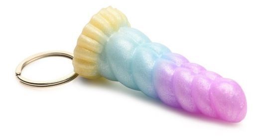 Fantastista lisää avaimiisi! Tämä suloinen avaimenperä replikoi isompaa Mystique Unicorn fantasia dildoa, mutta nyt voit asettaa sen avaimiesi kanssa söpönä lisänä. Avaimenperä on tehty silikonista ja sen renkaat metallista.