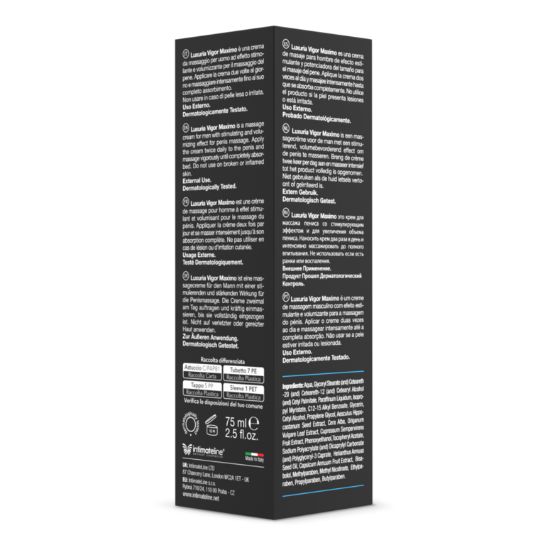 Vigor Maximo XXL -geeli auttaa sinua saavuttamaan unelmiesi peniksen! Kun levität geeliä säännöllisesti, se voi parantaa erektiosi kovuutta sekä kokoa. Levittäessäsi geeliä, sen aktiiviset ainesosat muotoilevat peniksesi uudelleen. Tuote on valmistettu täysin luonnollisista ainesosista.