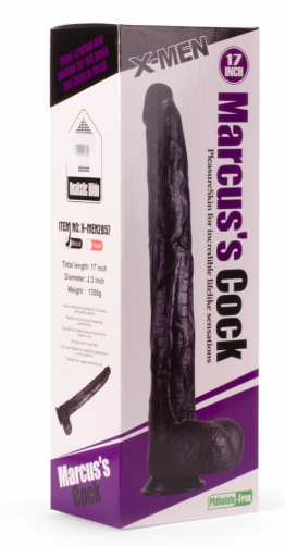 Mikäli pidät suuresta, niin tässä sinulle täydellinen tuote! X-MEN Marcus’ Cock on juuri niin iso, kuin isot nautinnot vaatii. Muotoiltu aidon näköiseksi ja tuntuiseksi suonien sekä ihon tuntuisen materiaalin kera. Todella voimakas imukuppi varmistaa rajummatkin leikit, sillä se pysyy tiukasti kiinni kaikilla tasaisilla pinnoilla.