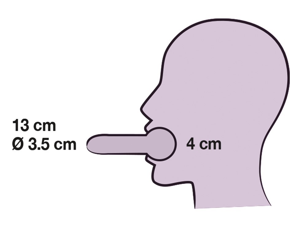 Musta nahkainen head harness, jossa integroituna suupallo. Ulkopuolelle kiinnitettynä 13cm pitkä dildo kumppanin iloksi. Täydellinen lisämauste bdsm- sessioihin. Sekä suupallon, että dildon halkaisija 3,5cm. Säädettävät hihnat varmistavat istuvuuden. Materiaalit: nahka, latex ja TPE.